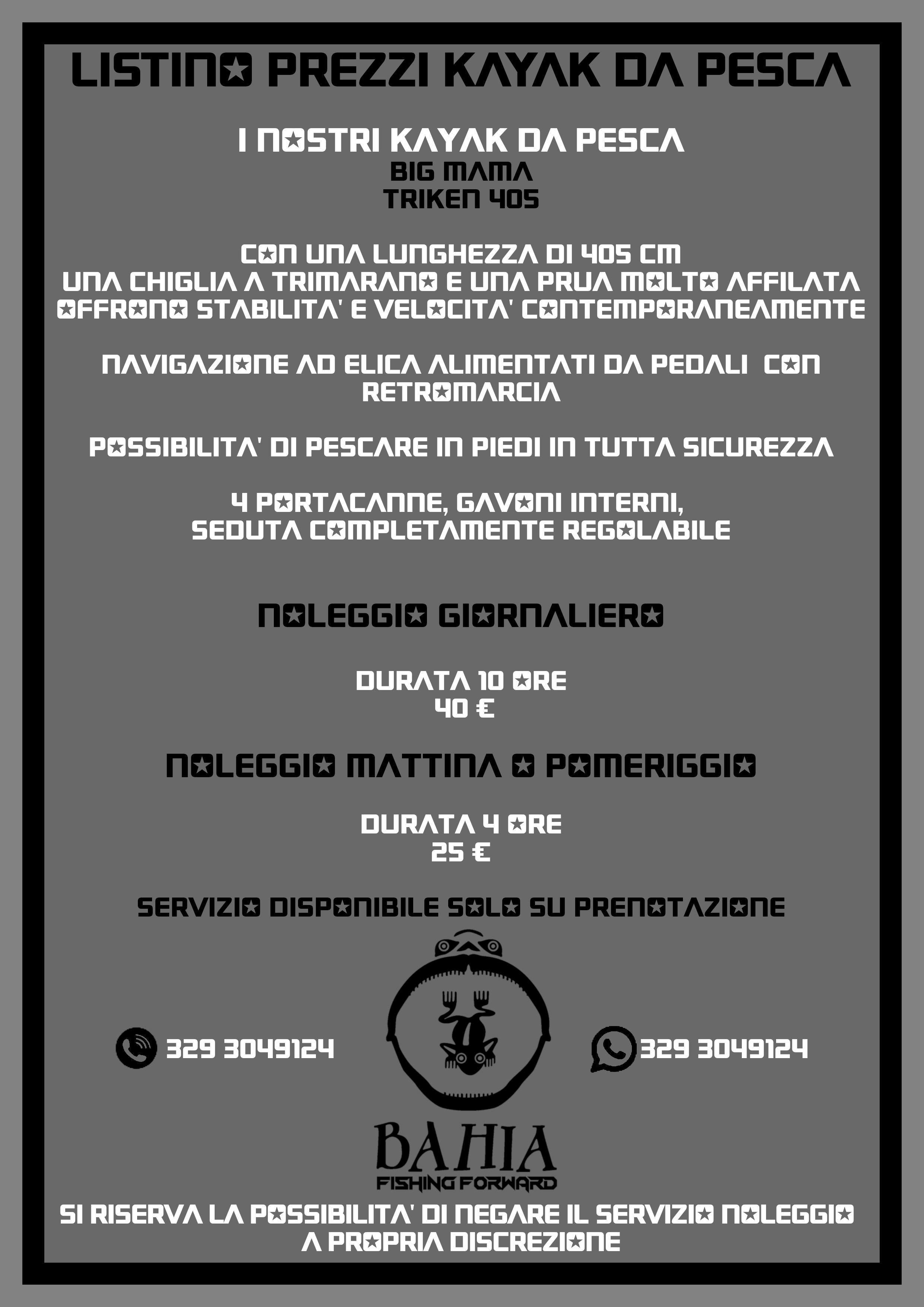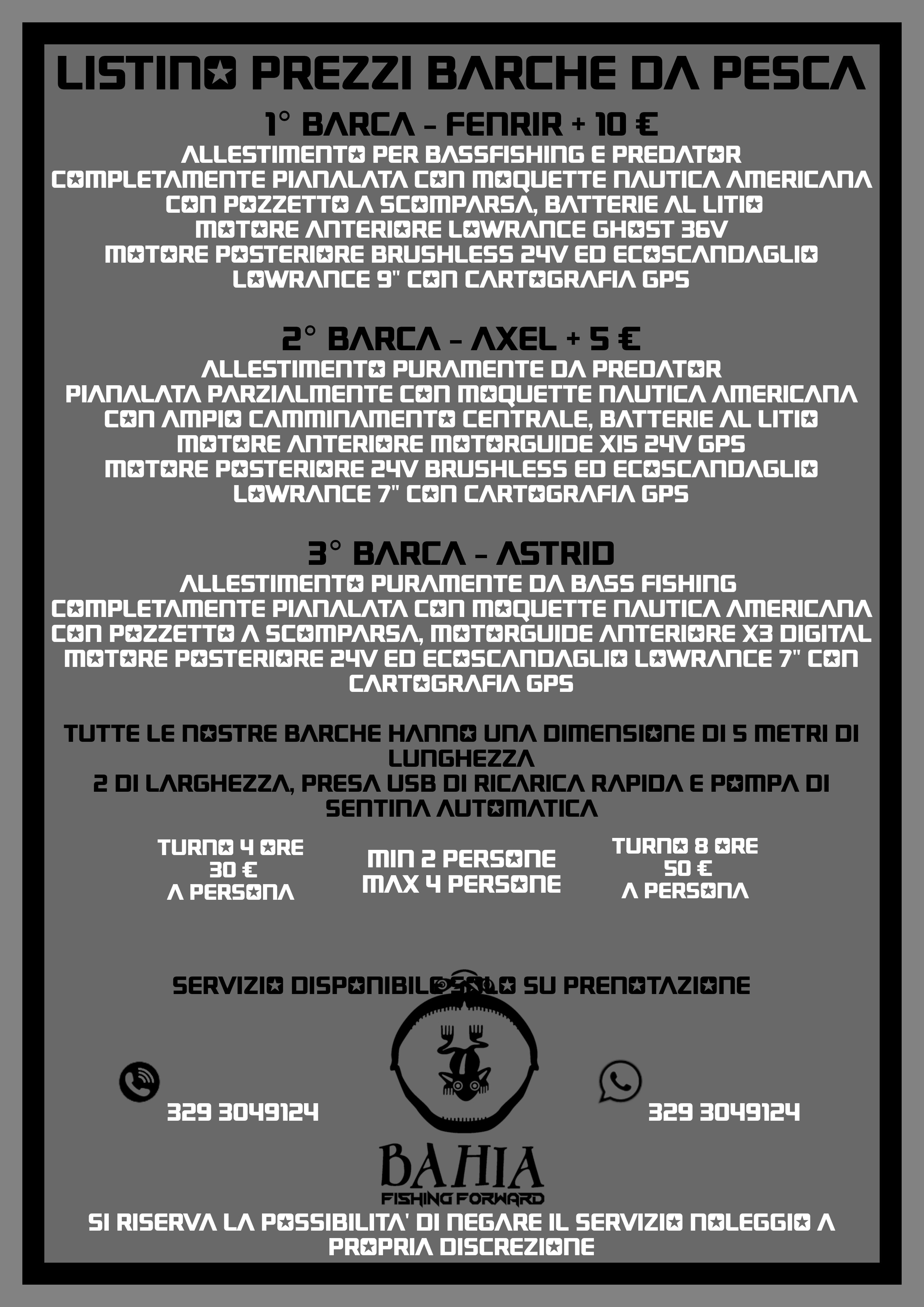 IN BASE AL TUO STILE DI PESCA O AL PREDATORE CHE VUOI CATTURARE PUOI SCEGLIERE L'ALLESTIMENTO CHE PREFERISCI SUL TUO NATANTE A NOLEGGIO