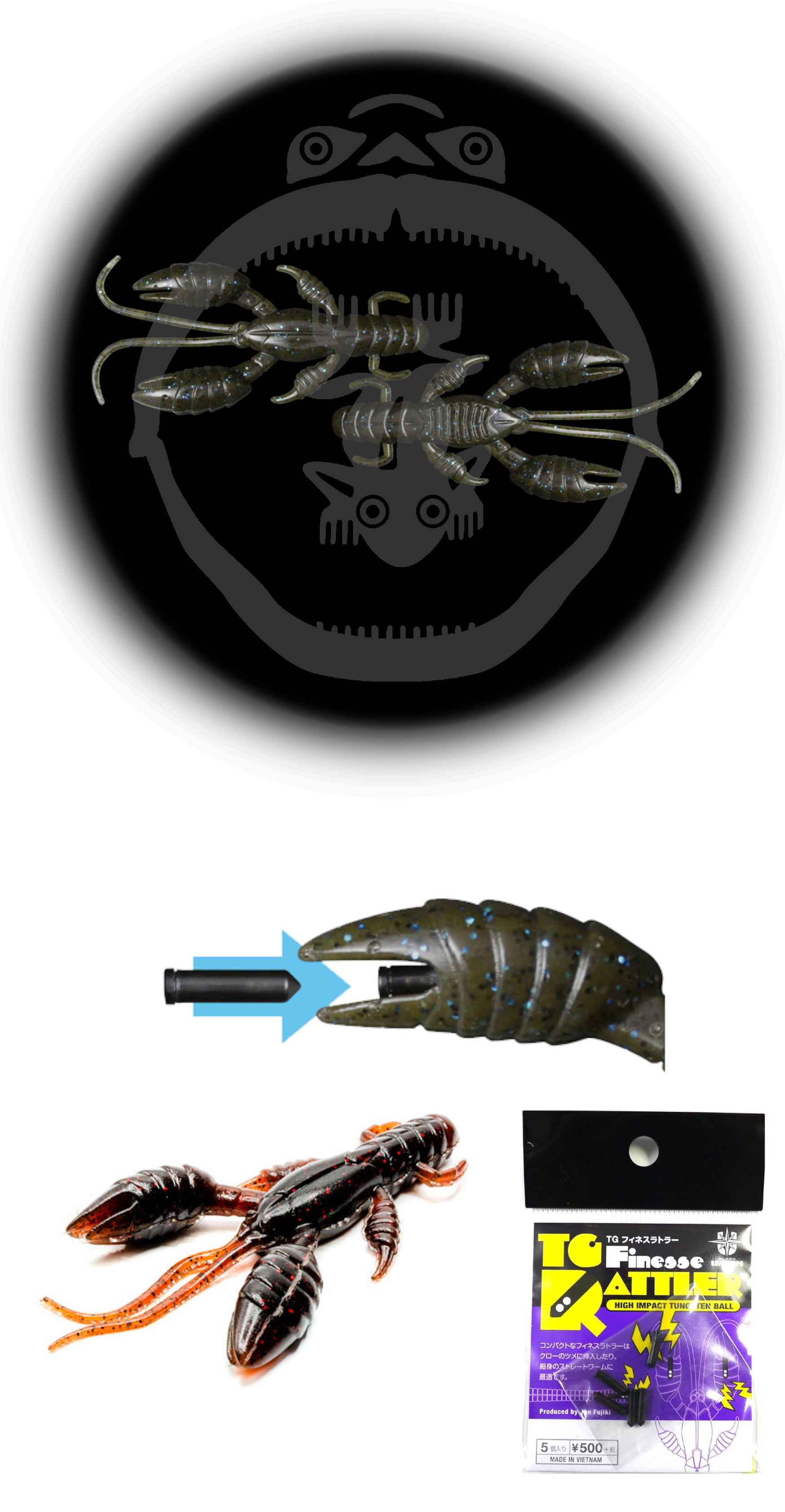 Le sue chele sono appositamente studiate con una fessura vuota dove puoi inserire i suoi specifici Rattle, iTG Finesse Rattle , acquistabili a parte, sono degli insert con sfere in tungsteno che renderanno questa esca rumorosa, simulando il gambero in difesa quando chiude le chele.