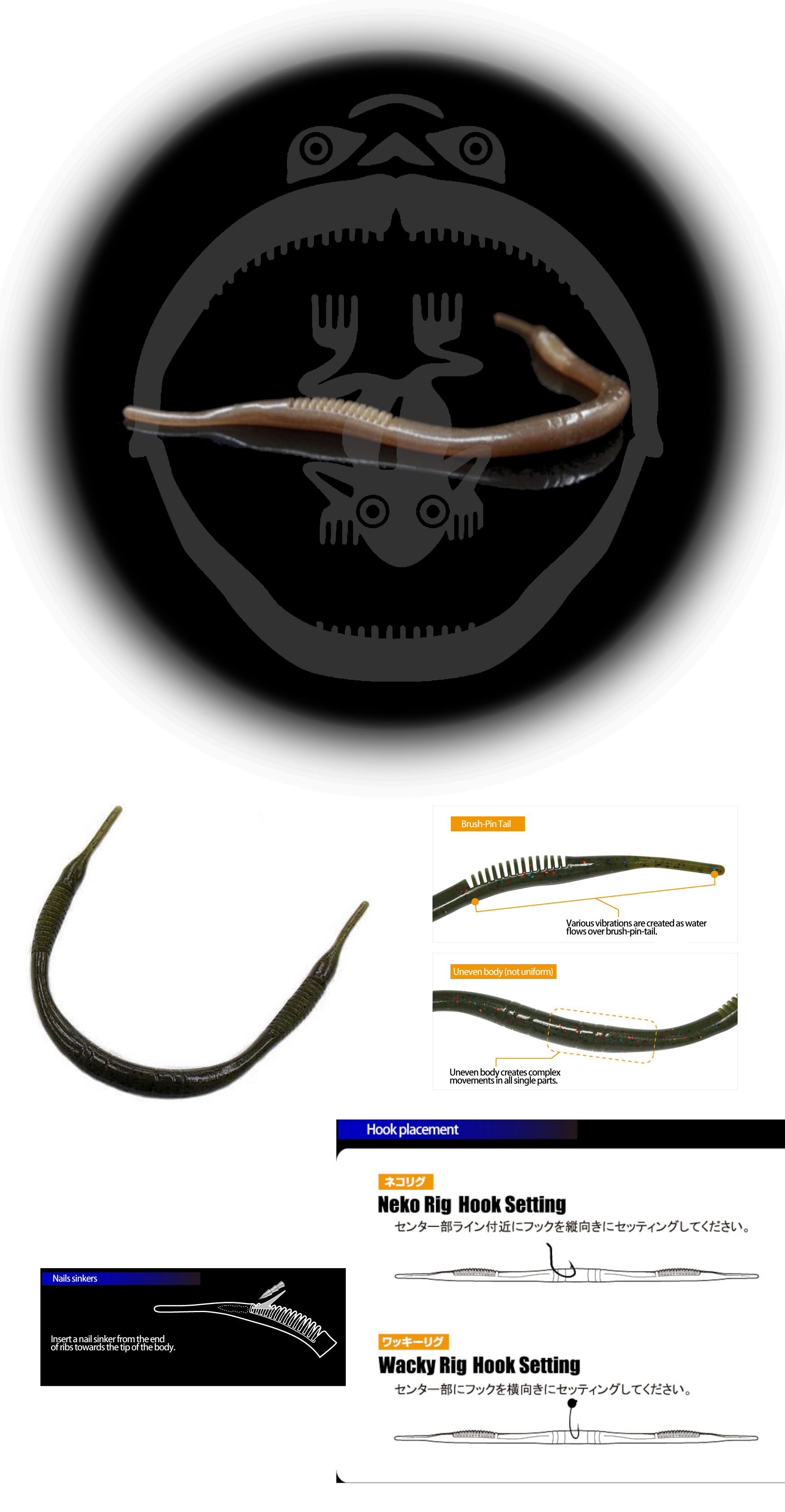 Imprevedibile nei movimenti, il corpo lungo e fine con la coda a spazzola sulla punta di entrambi i lati genera un'azione forte ma da movimento delicato, ottimo anche jerkato.